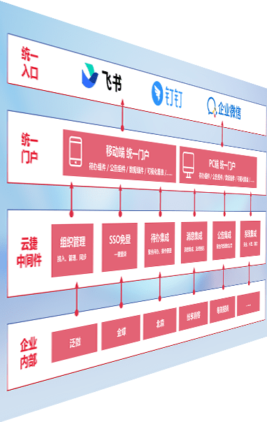 对协作平台提供支持服务,,支持企业应用与协作平台对接,,,,包含组织同步、、、消息集成、、、、待办集成等。。。支持目前主流的协作平台:钉钉、、、、企微和飞书。。。